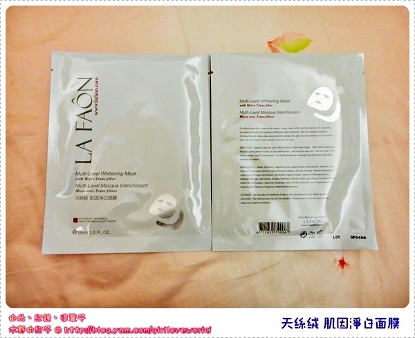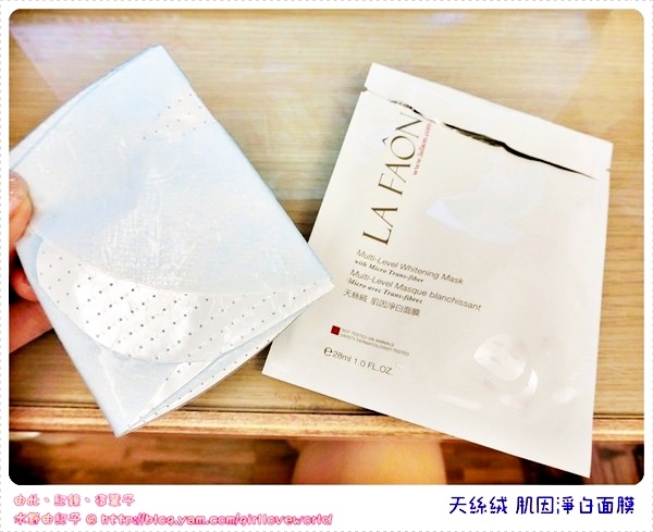 首先先來個這次的保濕亮白小法寶~LA FAON萊慕思的天絲絨肌因淨白面膜
