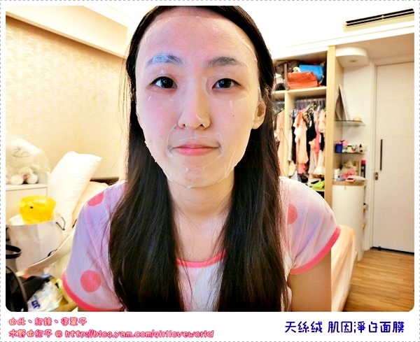 之後就剩下一張非常清透的面膜停留在臉上,質地非常的輕柔